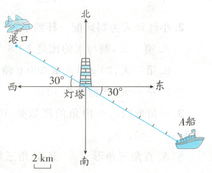 )km。2. A船、灯塔和港口正好在同一条直线上,因此,A船在灯塔的(
