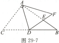 例 3 思维能力 一题多变(折叠问题)如图 29-7,在$Rt\triangle ABC$中,$\angle BAC = 90^{\circ}$,$\angle B = 36^{\circ}$,$AD$是斜边$BC$上的中线,将$\triangle ACD$沿$AD$对折,使点$C$落在点$F$处,线段$DF$与$AB$相交于点$E$,则$\angle BED$等于(