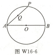 1. 如图 W16-6,$\odot O$的直径$AB = 4$,P 为$\odot O$上的动点,连接 AP,Q 为 AP 的中点,若点 P 在圆上运动一周,则点 Q 经过的路径长是