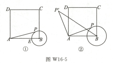 (1) 如图 W16-5①,在点 P 移动过程中,AP 长度的最小值是