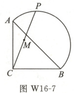 变式 如图 W16-7,在等腰直角三角形 ABC 中,$AC = BC = 2\sqrt{2}$,点 P 在以斜边 AB 为直径的半圆上,M 为 PC 的中点,当点 P 沿半圆从点 A 运动至点 B 时,点 M 运动的路径长为