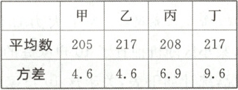 例 3(2025 泸州)某校七年级甲、乙、丙、丁四名同学参加 1 分钟跳绳测试,每人 10 次跳绳成绩的平均数(单位:个)及方差(单位:个²)如下表所示: