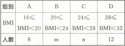 °;(4)该单位总人数为 300 人,请估计其中体重偏胖($24 \leq BMI < 28$)的人数是多少.