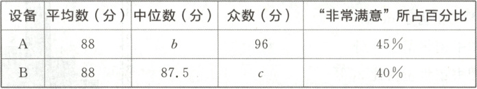 (2)(答案不唯一)A款AI聊天机器人更受用户喜爱。理由如下:因为两款的评分数据的平均数相同,都是88,但A款评分数据的中位数比B款的中位数高,所以A款AI聊天机器人更受用户喜爱。