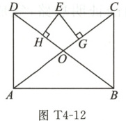 (2023 西藏)如图 T4-12,在矩形$ABCD$中,$AC$和$BD$相交于点$O$,$AD = 3$,$AB = 4$,$E$是$CD$边上一点,过点$E$作$EH \perp BD$于点$H$,$EG \perp AC$于点$G$,则$EH + EG$的值是