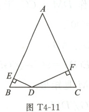 如图 T4-11,$\triangle ABC$的面积为24,$AB = AC = 8$,$D$为$BC$边上一点,过点$D$分别作$DE \perp AB$于点$E$,$DF \perp AC$于点$F$.若$DF = 2DE$,则$DF$的长为
