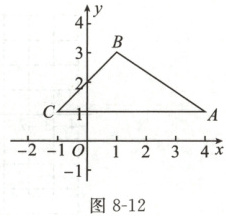 变式 3 如图 8-12 所示,在平面直角坐标系中,线段$AB$位于第一象限.若$A(4,1)$,$B(1,3)$,$C(-1,1)$,求$\triangle ABC$的面积.