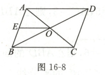 变式 2 如图 16-8,$□ ABCD$的对角线 AC,BD 相交于点 O,$AE = EB$. 若$\angle ADC = 70^{\circ}$,则$\angle AEO$的度数为