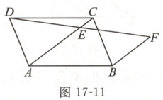 变式(2024 枣庄)如图 17-11,$E$ 为 $□ ABCD$ 的对角线 $AC$ 上一点,$AC = 5$,$CE = 1$,连接 $DE$ 并延长至点 $F$,使得 $EF = DE$,连接 $BF$,则 $BF$ 的长为