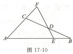 例 5 思维能力 一题多变 如图 17-10,在 $\triangle ABC$ 中,$D$ 是 $BC$ 边的中点,过点 $D$ 的直线交 $AB$ 于点 $E$,交 $AC$ 的延长线于点 $F$,且 $BE = CF$. 求证:$AE = AF$.