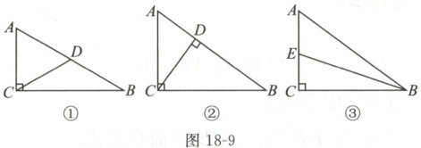;(2)如图 18-9①,若$CD$是$AB$边上的中线,$\angle B = 30^{\circ}$,$AC = 4$,则$CD =$