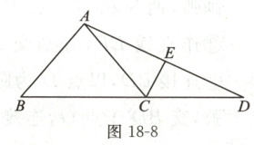 3. 如图 18-8,在等腰三角形$ABC$中,$AB = AC$,点$D$在$BC$的延长线上,且$\angle B = 2\angle D$,$E$是线段$AD$上的动点(不与点$A$,$D$重合),连接$CE$.