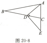 4. 思维能力 一题多解(2024 深圳)如图 20-8,在 $\triangle ABC$ 中,$AB = BC$,$\tan B = \frac{5}{12}$. $D$ 为 $BC$ 上一点,且满足 $\frac{BD}{CD} = \frac{8}{5}$,过点 $D$ 作 $DE \perp AD$ 交 $AC$ 的延长线于点 $E$,则 $\frac{CE}{AC} =$
