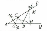 (2)在(1)的条件下,以点$O$为圆心,以$OA$为半径的圆交射线$AQ$于点$B$,用无刻度直尺和圆规在射线$CP$上求作点$M$,使点$M$到点$C$的距离与点$M$到射线$AQ$的距离相等;(保留作图痕迹,不写作法)