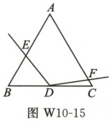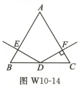 (1)如图 W10 - 14,若 $DF\perp AC$,直接写出 $DE$与 $AB$ 的位置关系;
