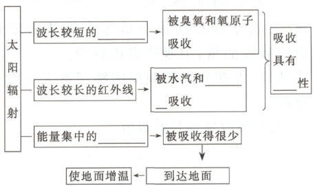 (3)低 阴天时,大气对太阳辐射的削弱作用强,因而白天气温较低。