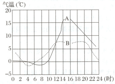 (2)A曲线代表周日气温变化,B曲线代表周六气温变化。