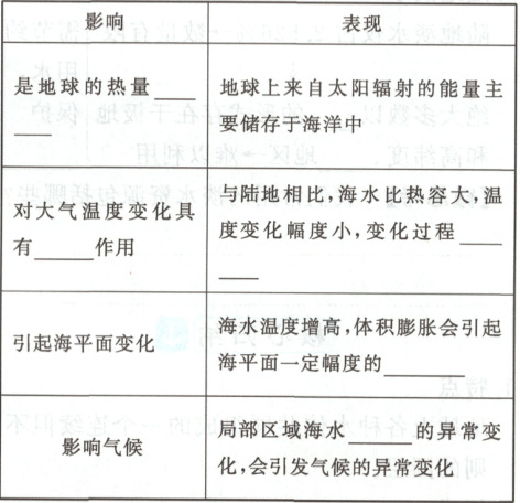 ②时间分布:同一海区表层海水的温度,通常随季节及气候的变化而变化,夏季温度较