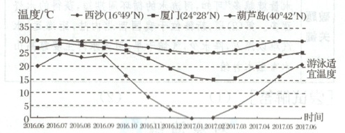 (2)分析材料中3个海域适宜人们游泳的时间长短的差异及主要影响因素。