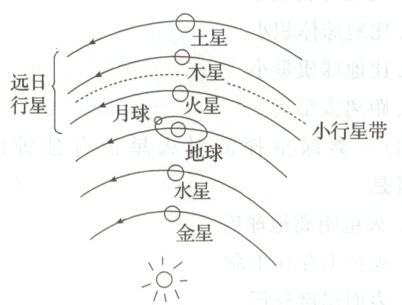 1.C 2.D 3.B 第1题,月球是地球唯一的一颗天然卫星,C正确。第2题,月球表面昼夜温差远大于地球表面,主要原因是大气层比较薄,空气密度极低,对太阳辐射的削弱作用和保温作用都比较差。故选D。第3题,八大行星按照距离太阳由近及远的顺序是:水星、金星、地球、火星、木星、土星、天王星、海王星;图中水星金星标注错误,①符合题意;其中远日行星是:天王星和海王星,图中远日行星标注错误,③符合题意。故选B。