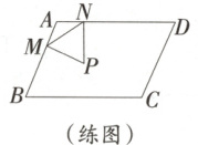 练 [25·陕西] 如图,在 $□ ABCD$ 中,$AB = 6,AD = 8,∠B = 60^{\circ}$.动点 $M,N$ 分别在边 $AB,AD$ 上,且 $AM = AN$,以 $MN$ 为边作等边三角形 $MNP$,使点 $P$ 始终在 $□ ABCD$ 的内部或边上.当 $\triangle MNP$ 的面积最大时,$DN$ 的长为