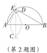 2. 如图,$AB$是半圆$O$的直径,分别以$O$,$A$为圆心,大于$\frac{1}{2}OA$的长为半径作弧,两弧相交于$C$,$D$两点,直线$CD$交半圆$O$于点$E$,连接$BE$,则$\angle ABE$的大小是(