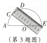 3. 如图,将一把带有刻度的直尺放在半圆形纸片上,使其一边经过圆心$O$,另一边所在直线与半圆相交于点$D$,$E$,量出半径$OC = 5\mathrm{cm}$,弦$DE = 8\mathrm{cm}$,则直尺的宽度为(