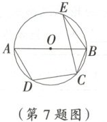 7. 如图,四边形$ABCD$内接于$\odot O$,$AB$为直径,点$E$为$\odot O$上一点。若$\angle BEC = 18^{\circ}$,则$\angle ADC$的度数为(