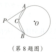 8. 如图,$PA$,$PB$分别与$\odot O$相切于$A$,$B$两点,点$C$为$\odot O$上一点,连接$AC$,$BC$,若$\angle P = 70^{\circ}$,则$\angle ACB$的度数为(