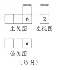 练 [25·邢台一模] 一个不透明立方体的 6 个面上分别写有数字 1,2,3,4,5,6,任意两对面上所写的两个数字之和为 7,将这样的几个立方体按照互相贴合的两个面上的数字之和为 8,摆放成一个几何体.这个几何体的三视图(如图所示)有一部分被损坏,图中所标注的是部分面上所见的数字,下列关于★所代表的数可能性最大的是(
