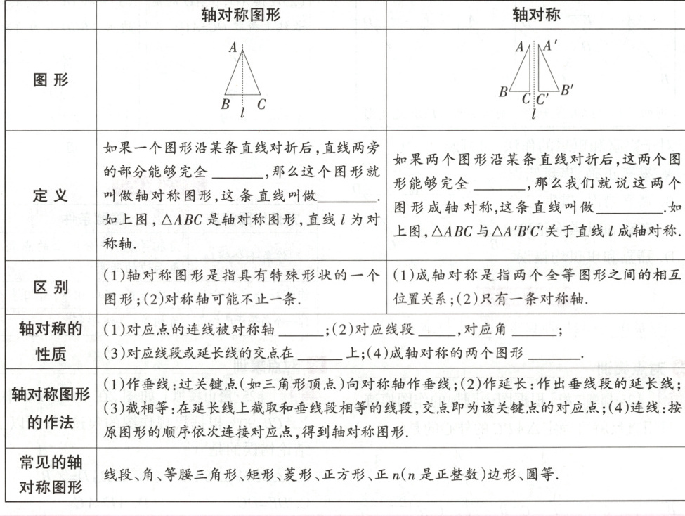 1.重合 对称轴 重合 对称轴 垂直平分 相等 相等 对称轴 全等 2.轴对称 全等 垂直平分