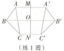练 1 [25·邯郸模拟]如图,$\triangle ABC$与$\triangle A'B'C'$关于直线$MN$对称,$BB'$交$MN$于点$O$,下列结论:①$AB = A'B'$;②$OB = OB'$;③$AA' // BB'$;④$\triangle ABC \cong \triangle A'B'C'$,其中错误的有(