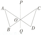 例 2 [24·河北 3 题]如图,$AD$与$BC$交于点$O$,$\triangle ABO$和$\triangle CDO$关于直线$PQ$对称,点$A,B$的对称点分别是点$C,D$.下列不一定正确的是(