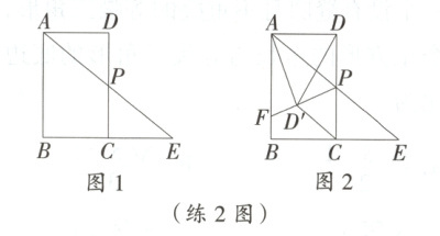 练 2 [优质原创]折纸是同学们喜欢的手工活动之一,通过折纸我们可以得到许多美丽的图形,同时折纸的过程还蕴含着丰富的数学知识.矩形$ABCD$中,$AB = 4$,$AD = 3$,点$P$在边$CD$上,且不与点$C,D$重合,直线$AP$与$BC$的延长线交于点$E$.