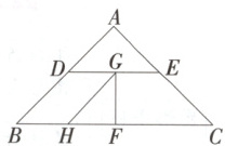 例 3 在某次数学探究活动中,小明将一张斜边长为$4$的等腰直角三角形$ABC(\angle A = 90^{\circ})$硬纸片剪切成如图所示的四块(其中$D,E,F$分别是$AB,AC,BC$的中点,$G,H$分别为$DE,BF$的中点),小明将这四块纸片重新组合拼成四边形(相互不重叠,不留空隙),则所能拼成的四边形中周长的最小值为