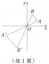 练 1 [25·内蒙古]如图,在平面直角坐标系中,$\triangle OAB$ 的顶点坐标分别是 $O(0,0),A(2,1),B(1,2)$,以原点 $O$ 为位似中心,在第三象限画 $\triangle OA'B'$ 与 $\triangle OAB$ 位似,若 $\triangle OA'B'$ 与 $\triangle OAB$ 的相似比为 $2:1$.则点 $A$ 的对应点 $A'$ 的坐标为 (