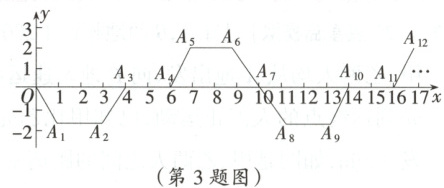 3. 如图,已知$A_1(1,-\sqrt{3})$,$A_2(3,-\sqrt{3})$,$A_3(4,0)$,$A_4(6,0)$,$A_5(7,\sqrt{3})$,$A_6(9,\sqrt{3})$,$A_7(10,0)$,$A_8(11,-\sqrt{3})$,$·s$,依此规律,则点$A_{2024}$的坐标为