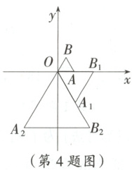 4. 在平面直角坐标系中,$\triangle AOB$为等边三角形,点$A$的坐标为$(1,0)$。把$\triangle AOB$按如图所示的方式放置,并将$\triangle AOB$进行变换:第一次变换:将$\triangle AOB$绕着原点$O$顺时针旋转$60^{\circ}$,同时边长扩大为$\triangle AOB$边长的$2$倍,得到$\triangle A_1OB_1$;第二次变换:将$\triangle A_1OB_1$绕着原点$O$顺时针旋转$60^{\circ}$,同时边长扩大为$\triangle A_1OB_1$边长的$2$倍,得到$\triangle A_2OB_2$,$·s$,依次类推,得到$\triangle A_{2023}OB_{2023}$,则$\triangle A_{2023}OB_{2023}$的边长为