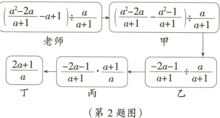 2. [25·石家庄模拟]老师给出一道数学题,由学生接力完成分式的计算,如图所示,每人只能看到前一人传过来的式子.