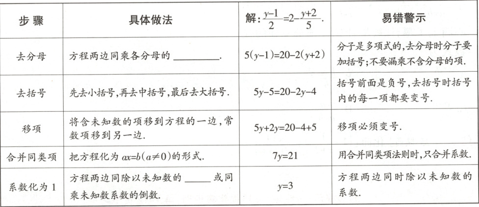2. 解一元一次方程的一般步骤 (2022 年、2023 年考查)