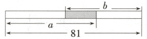 例 3 [25·河北 15 题]甲、乙两张等宽的长方形纸条,长分别为$a,b$.如图,将甲纸条的$\frac{1}{3}$与乙纸条的$\frac{2}{5}$叠合在一起,形成长为 81 的纸条,则$a + b=$
