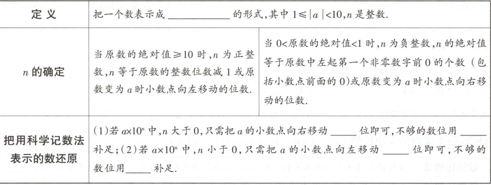考点四科学记数法(必考,考查用科学记数法表示数、还原用科学记数法表示的数)