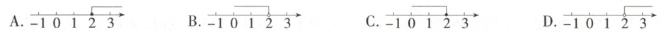 1. [人七下 P120 习题变式] 不等式 $-3x > -6$ 的解集在数轴上表示正确的是 (
