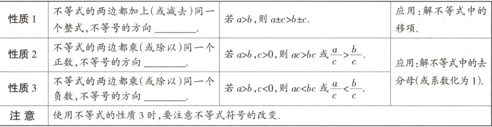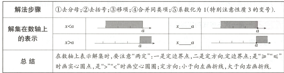 或 $ax + b < 0(a \neq 0)$.2. 一元一次不等式的解法步骤及解集表示(6 年 5 考)