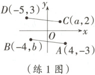 练 1 [25·石家庄模拟] 如图,在平面直角坐标系中,将线段 $ AB $ 平移到线段 $ CD $ 的位置,则 $ a + b = $ (