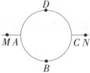 例 2 [23·河北 14 题] 如图是一种轨道示意图,其中 $ \overset{\frown}{ADC} $ 和 $ \overset{\frown}{ABC} $ 均为半圆,点 $ M $,$ A $,$ C $,$ N $ 依次在同一直线上,且 $ AM = CN $。现有两个机器人(看成点)分别从 $ M $,$ N $ 两点同时出发,沿着轨道以大小相同的速度匀速移动,其路线分别为 $ M \to A \to D \to C \to N $ 和 $ N \to C \to B \to A \to M $。若移动时间为 $ x $,两个机器人之间距离为 $ y $,则 $ y $ 与 $ x $ 关系对应的图象大致是 (