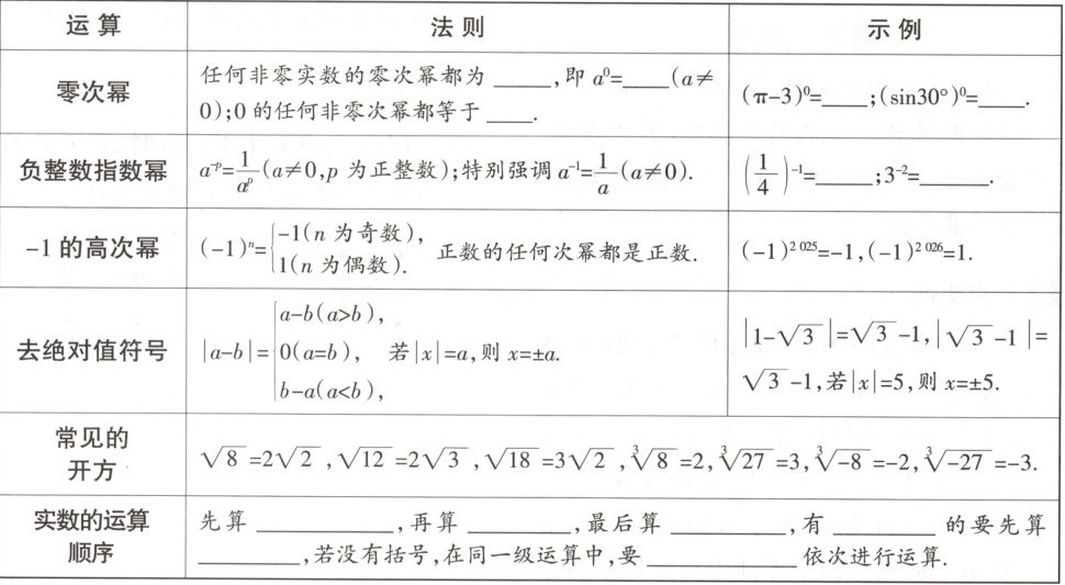3.常见的实数运算及法则(近6年连续考查)