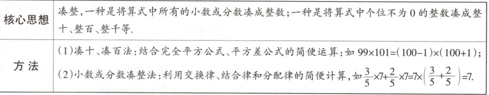 核心思想凑十整、整,一百种、整是千将等算.式中所有的小数或分数凑