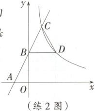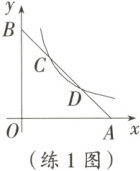 练 1 [25·张家口模拟] 如图,平面直角坐标系内有两点$A(4,0)$,$B(0,4)$,若反比例函数$y = \dfrac{k}{x}(k \neq 0)$的图象交线段$AB$于点$C$,$D$,且$BC = CD$,则$k =$