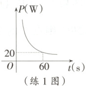 练 1 [25·长春] 在功$W(J)$一定的条件下,功率$P(W)$与做功时间$t(s)$成反比例,$P(W)$与$t(s)$之间的函数关系如图所示.当$25 \leq t \leq 40$时,$P$的值可以为 (